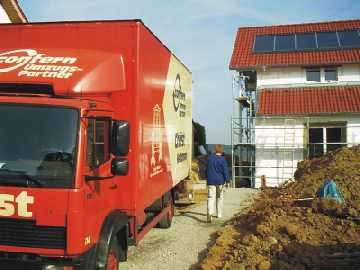 Es hat tatsächlich noch geklappt - drei Räume wurden soweit fertig gestellt, dass wir mit unseren Möbeln aus Weinsberg am 26.09.2003 nach Waldbach ziehen konnten, ohne dass die Möbel im Container zwischengelagert werden müssten. Den Umzug haben wir mit der Fa. Andreas Christ Umzugslogistik aus Heilbronn durchgeführt. Dies war übrigens bereits der zweite Umzug mit Fa. Christ und wir sind wieder genauso zufrieden, wie beim ersten mal vor sechs Jahren.