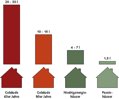 Heizungsverbrauch auf ein Minimum reduzieren, d.h. ca. 1,5 l/m²/a - Verzicht auf