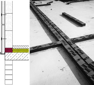 ein bis zwei Scharen Porenbetonsteinen oder einer Lage Schaumglas in Ebene der Dämmung