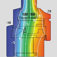 gefüllt. Dadurch liegen die inneren Oberflächentemperaturen der Scheibe