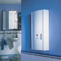 STIEBEL-Durchlauferhitzer DHE electronic comfort für die Versorgung mehrerer Entnahmestellen, für Einhandmischer und Thermostatbatterien geeignet, microcomputer-gesteuert, vollelektronisch geregelt, Fuzzi-Logic, Blankdraht- Heizsystem, besonders für kalkhaltiges Wasser geeignet, LCD-Multifunktionsdisplay, Temperaturwahl stufenlos zwischen 30 - 60 °C einstellbar, programmierbare Speichertaste, ECO-Taste für Energie- und Wassereinsparung, für vorgewärmtes Wasser bis 60°C, z.B. zur Nacherwärmung einer Solar-Anlage, Temperaturbegrenzung auf 43 °C möglich, elektronisches Lufterkennungssystem, Schutzart IP 25 (strahlwassergeschützt) 470 mm hoch, 225 mm breit, 110 mm tief, Gerätekappe weiß, DHE21 STK €592,00