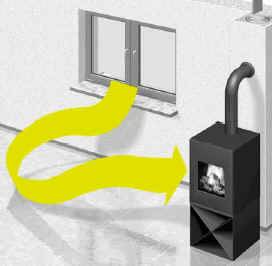 die für die Verbrennung notwendige Zuluft entnimmt die Feuerstätte nicht mehr