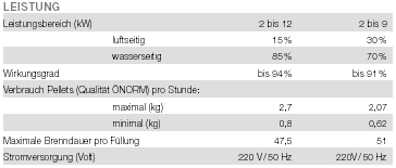Potenza al focolare/Leistung (kW): 25 Rendimento superiore a/Wirkungsgrad: 90% Capacità serbatoio pellets/Fassungsvermögen Kg.: 65 Consumo pellets (min./max) Kg/h/Verbrauch: 1,66-5 Peso Kg.: 260 Dimensioni LxPxH (mm)/Maße: 642x738x1381 Leistung fest 25 KW 65 kg Pelletsilo Fernsteuerung Leistungsverteilung L/W: 30%/70%
