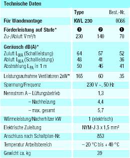 Gehäuse: Aus verzinktem Stahlblech, weiß lackiert, allseitig mit wärme- und schalldämmender Isolation. Wärmetauscher: Großflächiger Rotations-Wärmetauscher [] aus Aluminium in robuster Ausführung. Sommerbetrieb: Übersteigt die Zulufttemperatur den über den Sollwertgeber eingestellten Wert, schaltet der Rotationswärmetauscher automatisch ab. Die Luft durchströmt den Tauscher ohne WRG (100% Bypassfunktion). Kompaktgerät mit hocheffizientem Rotationswärmetauscher mit Wirkungsgrad bis 85%. Für die zentrale Be- und Entlüftung von Wohnhäusern und Etagenwohnungen.