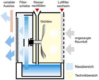 Befeuchterleistung zu erreichen. Mittels Rotation werden feinste