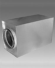 Rechteckiger Schalldämpfer mit runden Anschlüssen. Der Anschluss kann wahlweise mit LindabSafe oder mit LindabTransfer geliefert werden. |