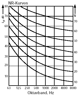 2) Mit Hilfe der NR-Bewertung, bei der alle Oktavmeßwerte unter der entsprechenden NR-Kurve liegen müssen.