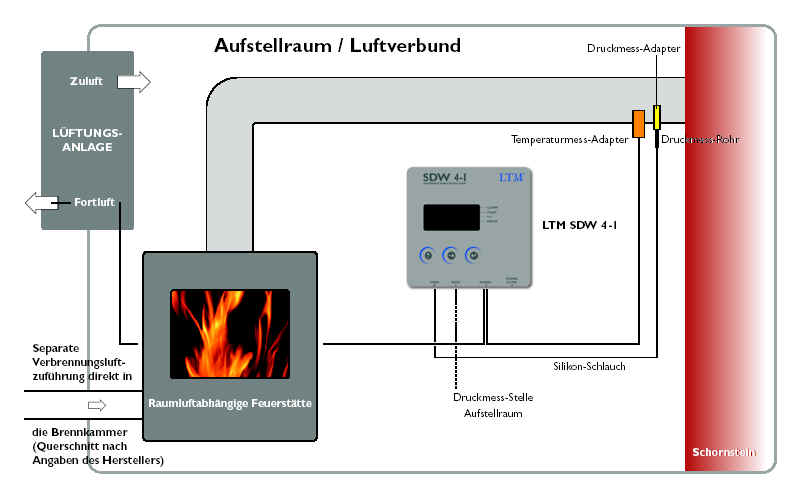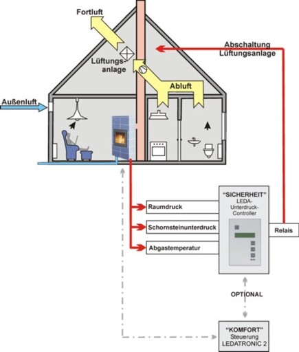 Unterdrucküberwachung von Feuerstätten und Ablufteinrichtungen Nur einfach ein Fenster zu öffnen bringt weder Sicherheit noch Komfort ! |