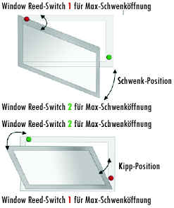 zwei Ausführungen an: Die zweite Version verfügt über entsprechende Anschlussklemmen und sollte von einem Fachmann installiert werden. Beide Geräte sind über ein Kabel von standardmäßig 5m Länge mit einem Magnetschalter verbunden. Dieser Schalter wird an einem Fenster installiert und steuert die Spannungszufuhr für die luftabsaugende Anlage. |