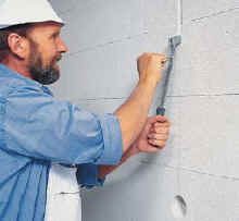 Porenbeton läßt sich leicht fräsen und bohren. Das glatte Mauerwerk kann direkt verfliest werden.
