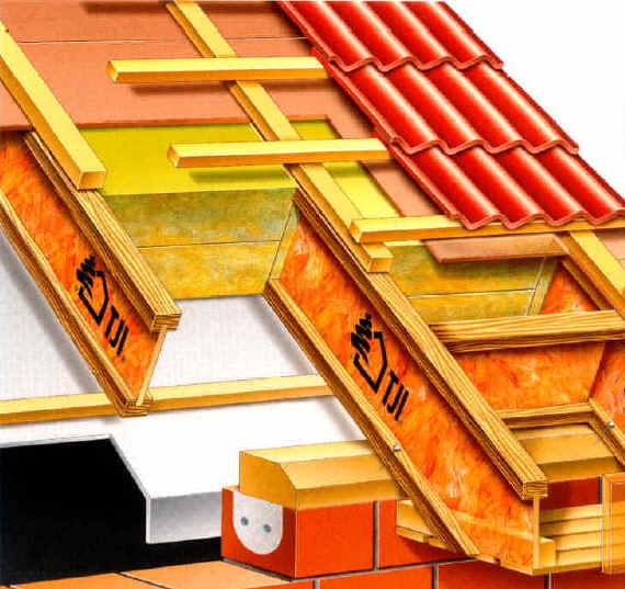 Das TrustJoist-System besteht aus drei "High-Tech-Komponenten", die alle bauaufsichtlich zugelassen sind (zur Ergänzung: Das Gegenstück zu unserem dach bildet der Misapor Schaumglasschotter unter der Bodenplatte des Kellers. Misapor hat die Zulassung derzeit erst beantragt...). TJI-Träger, TimberStrand LSL Rähm/Schwellen/Randbohlen und Parallam PSL Balken (hört sich alles schön an...)