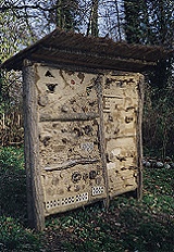 entfernte in der Landschaft verteilt liegende Biotopinseln miteinander. Bei ausreichendem Platz im Garten kann man Hecken auch als sog. Benjes-Hecke anlegen: Diese Art der Anlage einer Hecke ist nach ihrem Erfinder und Propagator, Hermann Benjes, benannt. Er entwickelte diese Methode als Reaktion auf die Anlage sog. "Behördenhecken", wie sie im Zuge u.a. von Flurbereinigungsverfahren in ausgeräumten Landschaften bundesweit verordnet werden. Diese sind teuer, oftmals sogar eingezäunt und bringen wenig bis keinen Nutzen für die Tiere. Benjes-Hecken sind preiswert und haben vom ersten Augenblick an einen vielfältigen Nutzen für Pflanzen und Tiere. Zur Anlage einer Benjes-Hecke verwendet man Wurzelknorren, Stammholz, Äste, Reisig und anderes organisches Material. Dieses schichtet man zwischen ein lockeres Gerüst zuvor mit weitem Abstand gepflanzter Büsche oder größerer Bäume oder häuft nur dieses Material zu einem Wall auf je nach Charakter, den die spätere Hecke haben soll. Das Schnittholz und das Reisigzeug dient vom ersten Augenblick an Tieren als Unterschlupf und auch als Nahrung (Rinde). In dessen Schutz wachsen dann durch Vogelkot, verschiedene Wildkräuter, Wildstauden und Büsche heran. Das tote Holz vermodert und zerfällt allmählich und bietet allen Arten von Insekten und Spinnen, Solitärbienen und Wespen Möglichkeiten zur Eiablage. Zu Beginn der Heckenentwicklung wachsen zahlreiche Kräuter und Stauden durch den Holzverhau, später, wenn Sträucher und Bäume diese abschatten, verlagert sich der Krautsaum nach außen. Je nach Geländesituation kann man die Hecke auch in einer de Luxe Ausführung anlegen. Dazu schichtet man im Zentrum Steinhaufen auf oder legt Wasserstellen an, die auch, wenn die Hecke aufwächst, auf Dauer erhalten bleiben und die Struktur verbessern. |
