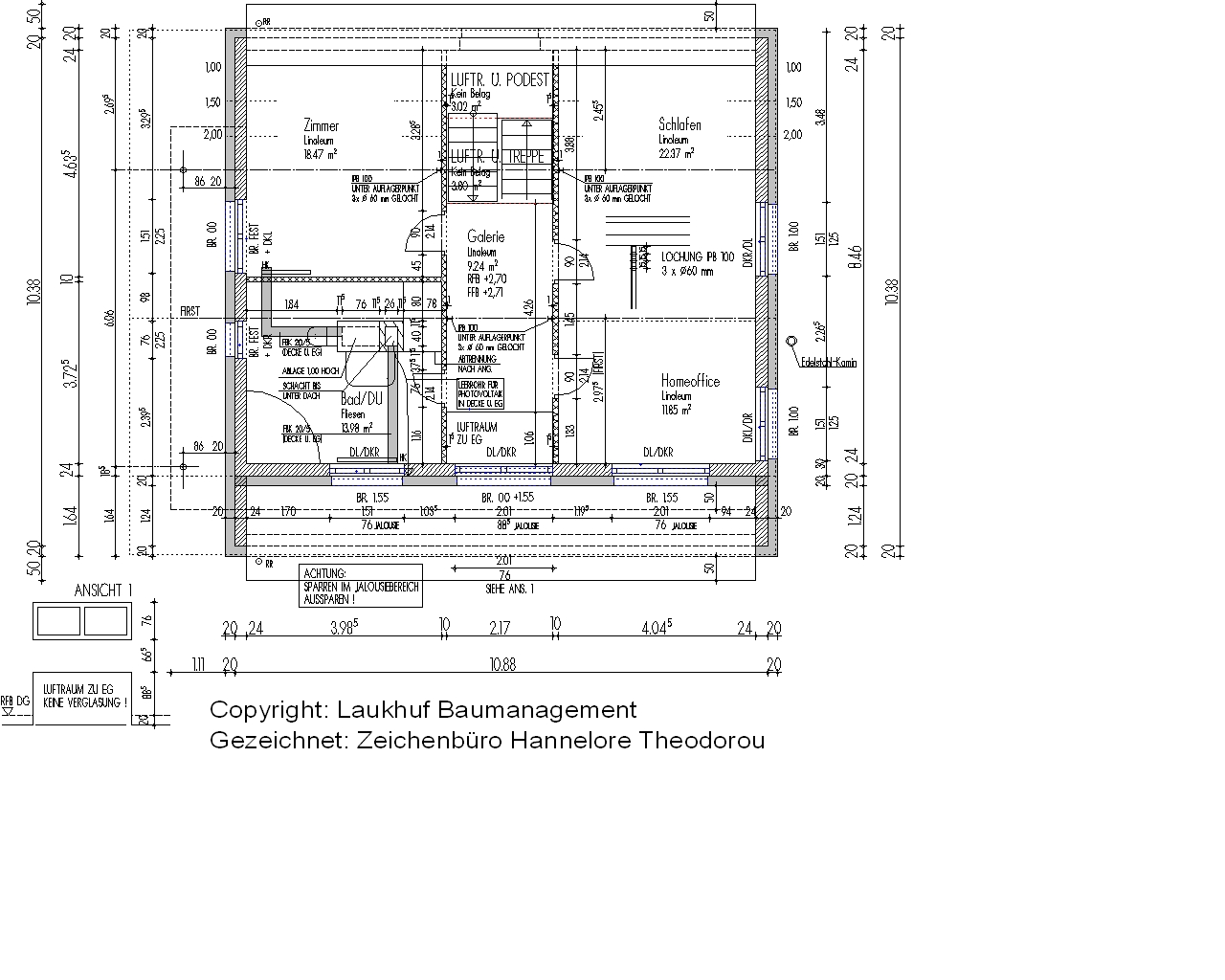| Ansicht Dachgeschoss Stand 07.11.2002 | 254 KB | Originalzeichnung Zeichenbüro | originale/DG01.jpg |