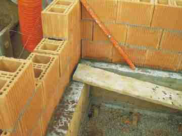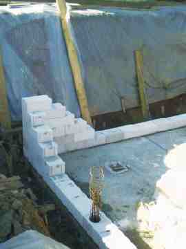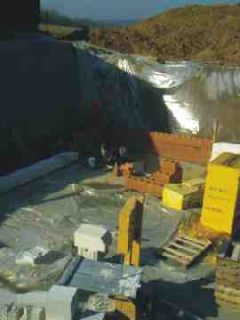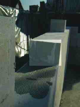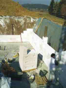 36 cm breiten Porenbetonsteine schließen bündig mit der Bodenplatte ab. |