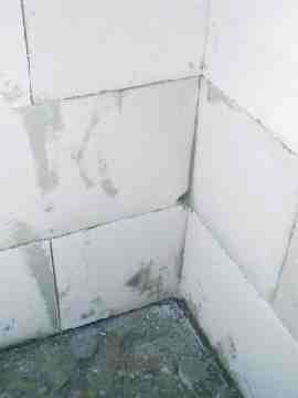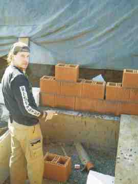 Erste Reihe Steine auf der Bodenplatte - ohne Hohlkehle. Die