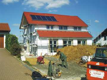 Eingeschotterte Zuwegungen - um das Haus muss für die Dämmarbeiten ausreichend Platz freigehalten werden. |