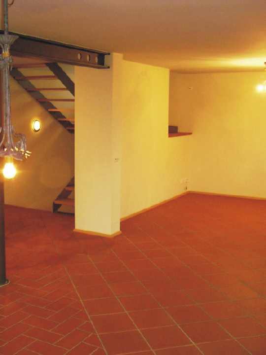 Das Podest mit Blick nach Norden, sowie ins Wohnzimmer durch die große Öffnung seitlich am Podest. |