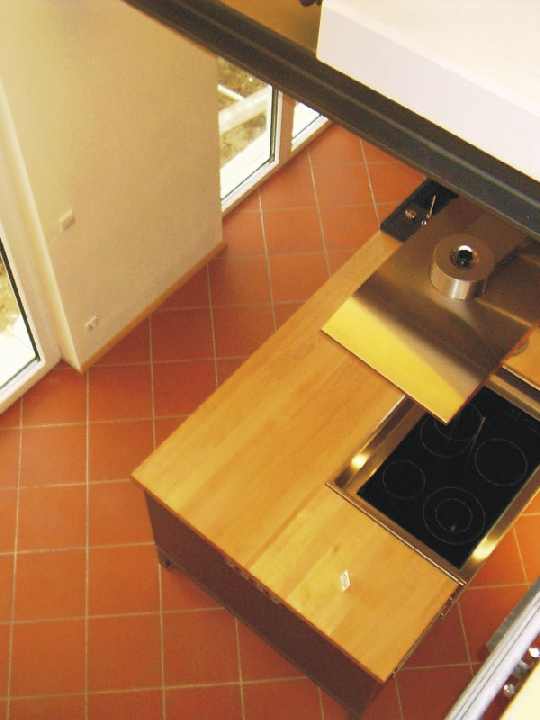 Der Blick von der Galerie in die Küche. |