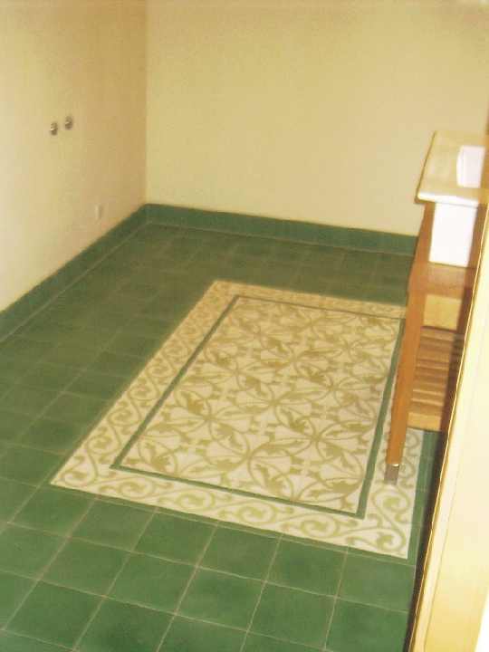 DLW Linoleum als Bodenbelag. Wände und Decken wurden mit Silikatfarben gestrichen. Es gibt weder Tapeten noch Teppichböden. |