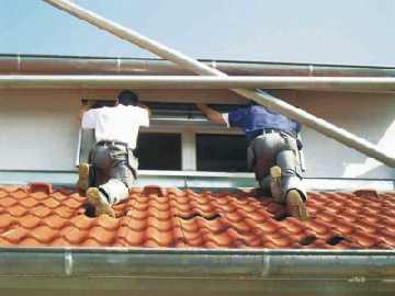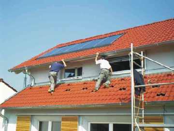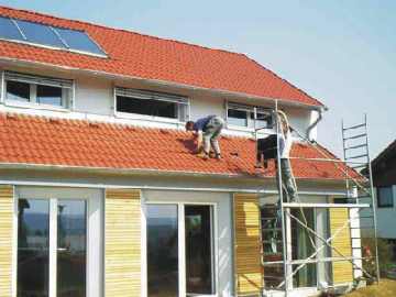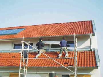 Am 16.04.2004 fand die Endmontage der Warema-Jalousien (Sonnenschutz) auf der OG-Südseite statt. |