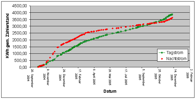 | 16.02.2006 | Umbau des Zwischenzählers vor die Wärmepumpe (Heizstab nun ohne Zwischenzähler, da immer aus) |