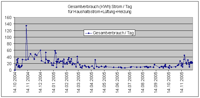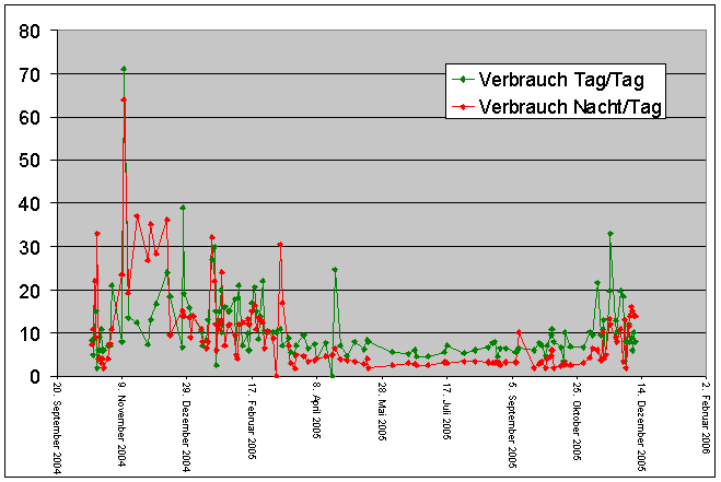Bitte beachten Sie, dass zwischen dem 14.10. und 25.12.2004 immer noch mit dem Heizstab geheizt wurde. |