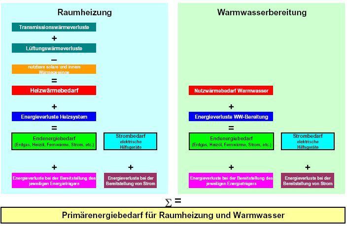 Heizung und Warmwasser pro Quadratmeter Gebäudenutzfläche benötigt und ein