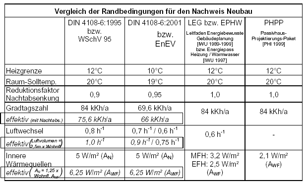 Die Randbedingungen der EnEV im Vergleich mit dem "Leitfaden Energiebewusste