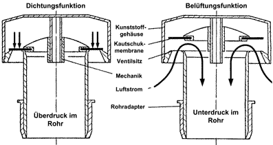 ein Fallrohrentlüfter an, welcher nur bei Unterdruck öffnet und bei Überdruck