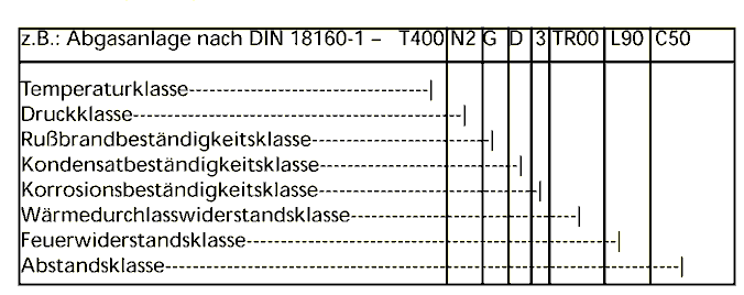 Bei Temperaturklassen über T 200 ist nachzuweisen, dass an den Bauteilen aus oder mit brennbaren Baustoffen keine höheren Temperaturen als 85°C auftreten können. Der Nachweis ist entbehrlich für Temperaturklassen bis T 400, wenn: