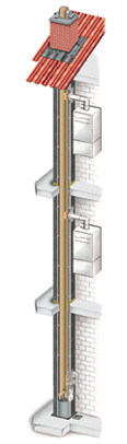 Für das dezentrale Heizen sind LA-Systeme die sicherste Lösung. Sie ermöglichen den Betrieb der Feuerstätte, ohne die Verbrennungsluft dem Aufstellraum zu entziehen. Probleme mit offenen Feuerstätten, Dunstabzugshauben oder dichten Fenstern gibt es nicht mehr. Die Montage ist in Ein- und Mehrfamilienhäusern zugelassen. Es können pro Etage vier