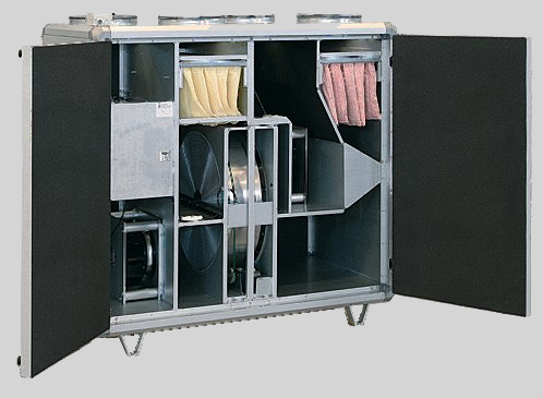 Die TOPVEX-Gerätereihe sind Kompaktlüftungsgeräte für Wohn- und kleinere Geschäftshäuser. Die Geräte sind für Wandmontage (VR-400 / 700) und für Standmontage (TOPVEX 1000-2000) konstruiert. Sie bestehen aus einem zweischaligen Gehäuse mit 30-50mm Mineralwolldämmung. Die TOPVEX/VR-Geräte werden betriebsfertig mit je einem Ventilator für Zu- und Abluft, einem Rotationswärmetauscher, Zu-, Abluftilter und Regelung ausgeliefert. Der Rotationswärmetauscher liefert eine ausreichende Zulufttemperatur bei geringer Leistungsaufnahme. Deshalb ist kein Nachheizregister bei TOPVEX-400 / 700 installiert. Für die Installation in extrem kalten Regionen, kann jedoch ganz einfach eines nachgerüstet werden (plug and play). In den Standgeräten ist wahlweise ein eletr. oder ein PWW-Nachheizregister integriert. | Text vollständig der Homepage des Herstellers entnommen. |