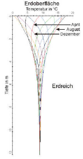 Temperaturprofils des Erdreichs durch den EWT. Obige Abbildung zeigt qualitativ, wie das