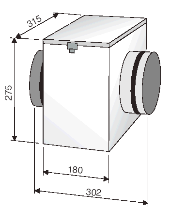 ausgestattet. Gehäuse aus verzinktem Stahlblech, beidseitig Rohranschlüsse