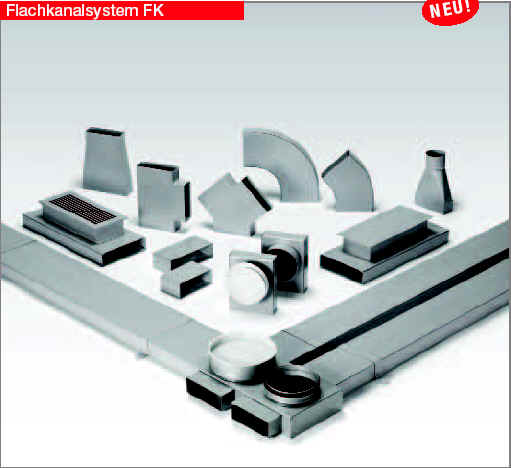 | Unter www.flachkanal.de finden sich einige Produkte, die sonst in dieser Form nicht angeboten werden. Interessant sind Flachkanäle aus Zinkblech und diverse Formstücke. Das Grieser-Flachkanalsystem besteht aus über 100 Standardelementen und deckt praktisch alle Installationsaufgaben ab. Die Standardbauhöhe von 50 mm liegen in fünf Nennweiten vor. |