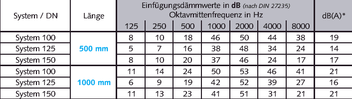 entstehen. Das Gehäuse besteht aus einem verzinkten, gefalzten Rohr. Das Innenrohr ist aus Lochblech gefertigt, das zusätzlich mit einem Rieselschutz versehen wird. Der Anschluss erfolgt wahlweise über Steckverbinder oder Flansch. Das Absorbermaterial ist unbrennbar nach DIN4102 und gesundheitlich unbedenklich (biolöslich oder >Kl40) Lufttemperaturen sind bis max. 150ºC, Strömungsgeschwindigkeiten bis zu 30 m/s zulässig. |