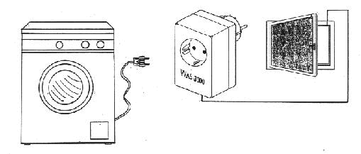 Die Geräte FSG ® 5000 und FSG® 6000 sind so ausgelegt, daß sie zwischen Steckdose bzw. Stromversorgung und Dunstabzugshaube, Wäschetrockner usw. geschaltet werden. Ein am Raumfenster (Dreh- oder Kipp-Fenster) angebrachter Funkfensterschalter schaltet den Stromkreis nur dann frei, wenn das Fenster geöffnet ist. |