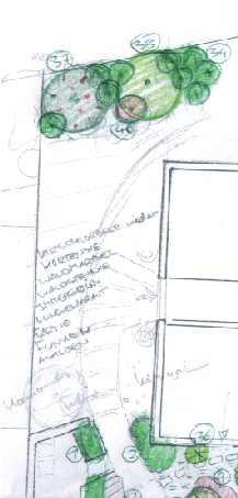 Am 10.09.2004 wurde der unten abgebildete Pflanzplan zusammen von/mit Herrn Schlipf erstellt. Wir haben an die Pflanzenauswahl mehrere Anforderungen gestellt, die wir ohne fachkundige Unterstützung nicht in dieser Form treffen hätten können. Wir sind keine Gartenspezialisten und können auch in diesem Bereich nicht mit Fachwissen glänzen. Zum einen darf unser Passivhaus im Winter nicht durch Bäume verdeckt sein, zum anderen darf er Wärmepumpenkollektor im Garten nicht zu sehr beschattet werden. Trotzdem muss das Haus in der exponierte Lage des Grundstücks durch passende Bepflanzung vor störenden Blicken bewahrt werden, die Terrasse hinter einem schützenden Pflanzengürtel verschwinden. Die Pflanzen müssen aber den klimatischen Bedingungen gewachsen sein (trockener Boden, starke Sonne, oft starker Wind). Nun haben wir einen Pflanzplan, der ebenso wie der Plan der Außenanlagen genau umgesetzt werden kann.